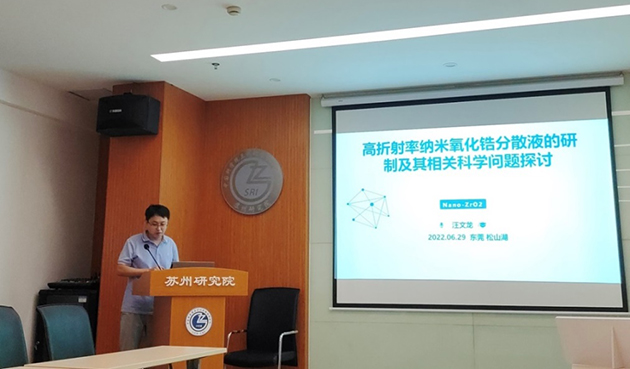 汪文龙研究员介绍了高折射率纳米氧化锆分散液的用途,其主要应用在手机、电脑、电视等液晶显示器的背光模组中,以增强其发光亮度和提高清晰度。系统介绍阐述了高折射率纳米氧化锆分散液的研究进展,分享了其课题组在该领域课题的提出、材料的设计以、与企业的合作开发交流,以及课题进展中遇到的问题和瓶颈。