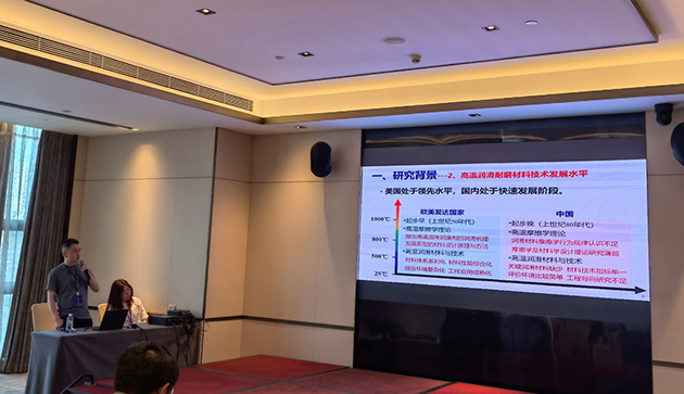 程军研究员、张松伟副研究员分别作了题为“新型高熵合金润滑耐磨材料的成分/组织精细化设计及性能调控”和“质子型油溶性离子液体结构设计与极压抗磨机理研究”的交流报告。