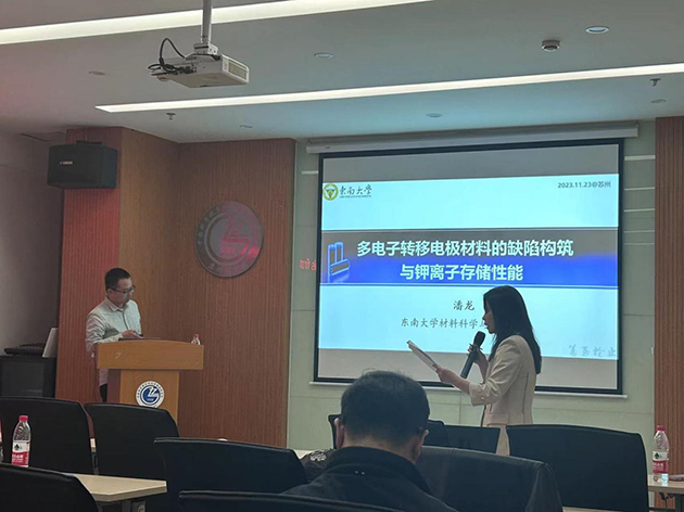 潘龙团队长期从事钾离子电池研究,开展了通过在多电子转移材料中引入缺陷,以期有效改善其钾离子存储性能的系列研究。他以过渡金属硫族化合物为多电子转移材料的典型代表,介绍了其团队在新型多电子转移材料的开发、缺陷调控与钾离子存储性能的构效关系和缺陷结构在钾离子存储过程中的演变规律等方面最新进展。