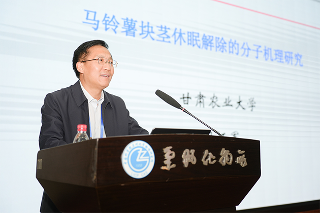 学术报告环节,由兰州化物所天然药物与化学测量研究中心主任杨军丽主持。特邀国际马铃薯中心亚太中心谢建民主任、国家马铃薯产业技术体系首席科学家徐建飞研究员、甘肃农业大学副校长司怀军教授和兰州化物所曾凡逵研究员分别作了题为“加强科技进步和国际合作,推动薯业可持续发展”“我国马铃薯产业发展现状和展望”“马铃薯块茎休眠解除的分子机理”和“从马铃薯加工废弃物资源化利用到质量安全与营养品质评价”的报告。会议还举行了联盟的揭牌仪式,兰州化物所为联盟的依托单位,曾凡逵为理事长。会议期间还参观了马铃薯品种及加工产品的展览。下午,与会人员赴甘肃亚盛薯业集团有限责任公司交流,参观了国家马铃薯产业技术体系加工研究室成果展。