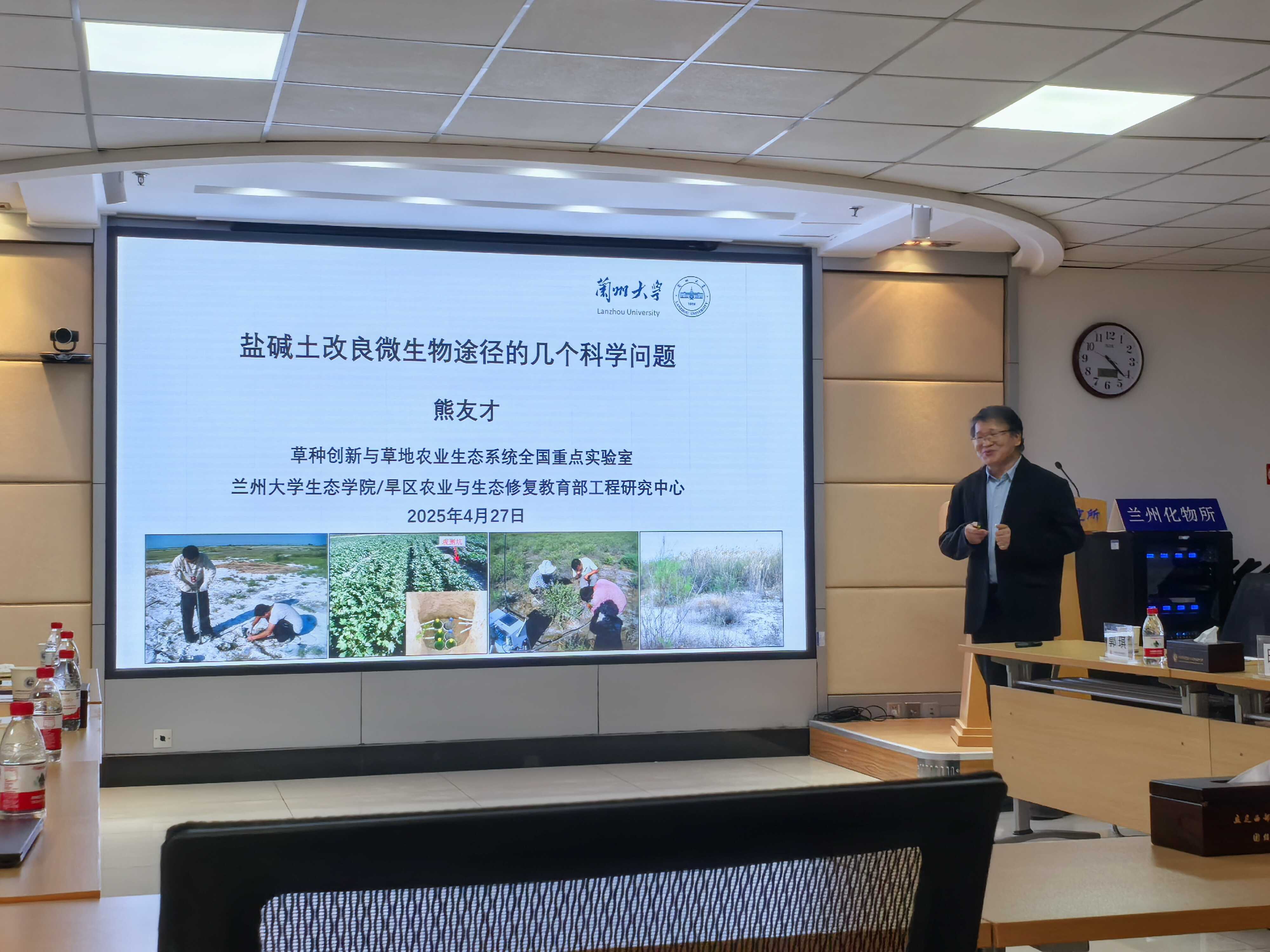 4月27日,中国科学院兰州化学物理研究所举办盐碱地改良新材料、新技术学术报告会,邀请北京化工大学冯拥军教授、中国石油大学(华东)田原宇教授、兰州大学熊友才教授和甘肃省科学院生物研究所郭琪研究员分别作了学术报告。兰州化物所资源化学与能源材料研究中心/甘肃省黏土矿物重点实验室相关人员参会。
