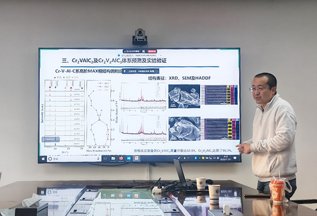 肖冰教授详细介绍了神经网络与迭代算法的结合应用,阐述了四元MAX陶瓷合成过程中涉及的微观反应动力学和能量转化机制。通过算法优化,为MAX陶瓷的制备与应用提供了全新的理论指导,为四元MAX陶瓷的合成工艺带来了突破性的技术支持。