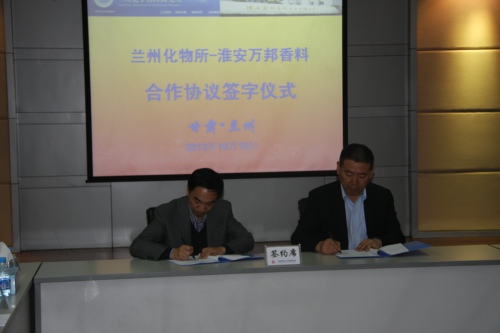 随后,兰州化物所、淮安万邦香料工业有限公司签署“中试孵化基地协议”,双方将在化工新产品中试转化方面加强合作。