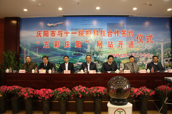 2月27日,庆阳市与十一院校所科技合作签约仪式在兰州举行。甘肃省副省长石军出席签约仪式。中国科学院兰州化学物理研究所所长助理师彦平代表研究所与庆阳市副市长毛曼君签订了全面科技合作协议。