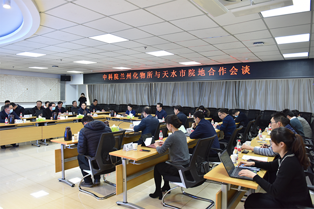 为全面促进政产学研协同创新发展,12月29日,天水市委书记张永霞,天水市委副书记、市长王国先及天水市骨干企业负责人等一行到中国科学院兰州化学物理研究所进行所地合作交流会谈。兰州化物所所长、党委书记王齐华,兰州化物所学术委员会副主任委员、中科院院士刘维民及相关科研与管理人员参加会议。兰州化物所副所长周峰主持会议。