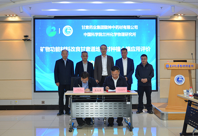 4月22日,中国科学院兰州化学物理研究所(以下简称“兰州化物所”)与甘肃药业投资集团有限公司(以下简称“甘肃药业集团”)举行了道地药材种植土壤改良项目合作签约暨甘肃中药材高质量发展座谈会。兰州化物所所长、党委副书记周峰,甘肃省老科学技术工作者协会会长、甘肃省农业农村厅原一级巡视员杨祁峰,甘肃药业集团党委书记、董事长周荣,党委副书记、总经理窦生铭等出席会议。兰州化物所科技合作处和甘肃省黏土矿物重点实验室/资源化学与能源材料研究中心相关人员参加会议。