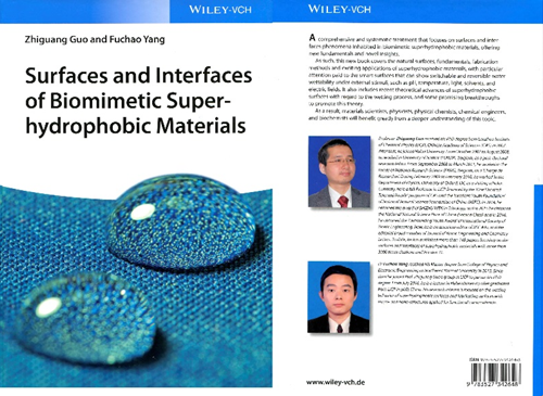 近日,由中国科学院兰州化学物理研究所固体润滑国家重点实验室郭志光研究员和杨付超博士编著的《Surfaces and Interfaces of Biomimetic Super-hydrophobic Materials》一书由美国WILEY出版社正式发行。固体润滑国家重点实验室仿生摩擦学课题组多位老师和同学参与该著作的编写。