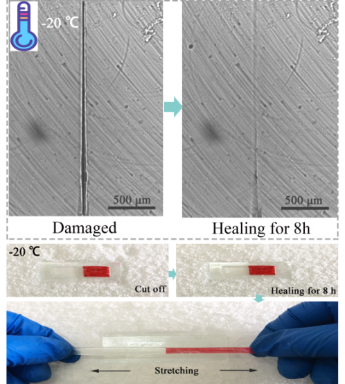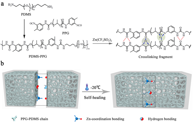 图1. 低温下可自愈合的PPG-PDMS-Zn弹性体