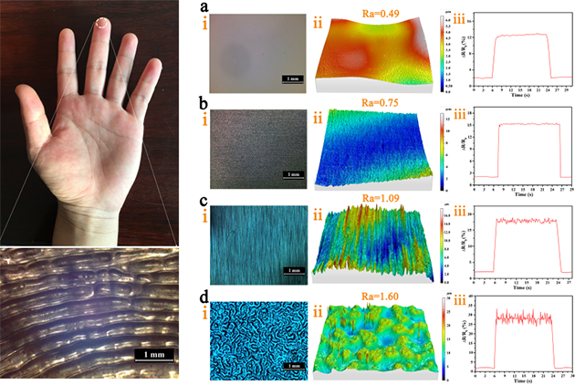 图3. 模拟人类指尖传感功能的摩擦传感器可实现对物体表面粗糙度的检测