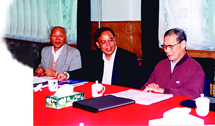 ①严东升(右)、党鸿辛(左)和薛群基(中)三位院士分别任实验室名誉主任及学术委员会主任