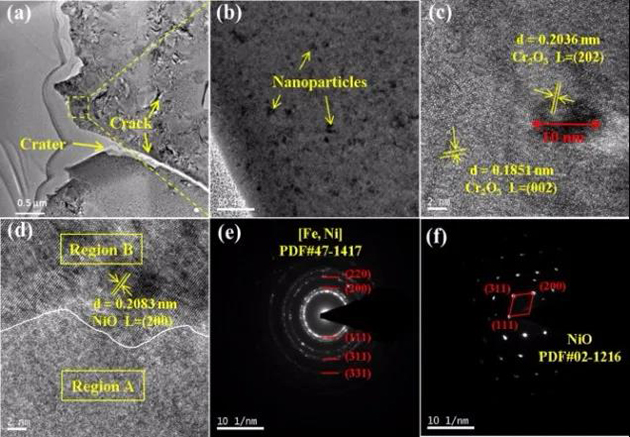 近期,他们又利用具有优异耐高温耐腐蚀性能的Ni基合金粉末,制备了相关耐气蚀涂层材料,揭示了涂层晶体结构演变、物相、组织改善对涂层在人工海水中耐气蚀能力提高的机理;研究了涂层表面形成的腐蚀膜与涂层气蚀性能的交互作用并进行了深入剖析;通过对涂层气蚀斑区域进行电化学测试,分析了气蚀损伤的电化学腐蚀作用机制。
