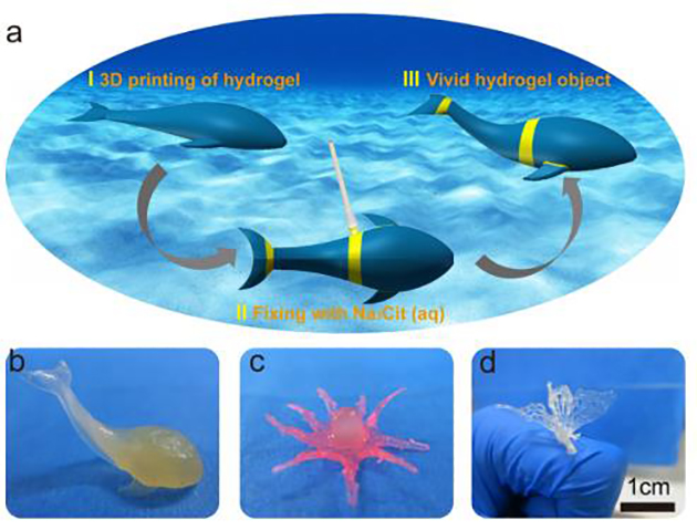 水凝胶因高强韧的性能被广泛应用,其制备工艺也已经和3D打印技术结合,目前单网络水凝胶已经能够通过3D打印很好实现。近期,具有更高强韧性能的双层网络水凝胶也搭上了3D打印的便车。