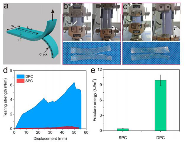 图 | 3D 打印 DPC 水凝胶和 SPC 水凝胶韧性对比