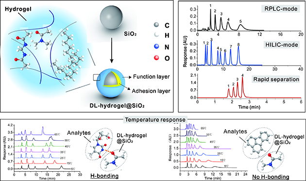 图3. 纳米多孔材料辅助的水凝胶功能化的液相色谱固定相及其选择性分离