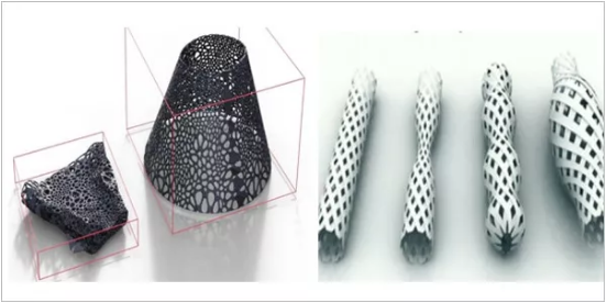 如图3所示,利用3D打印技术制备精确设计的管状三维结构,改变外界条件时,三维结构会在特定位置发生变形,实现不同场景的应用。4D打印技术可以用于生物医药、智能设备等难于人工操作的或精密的空间,从而解决现有3D打印材料面临的问题。