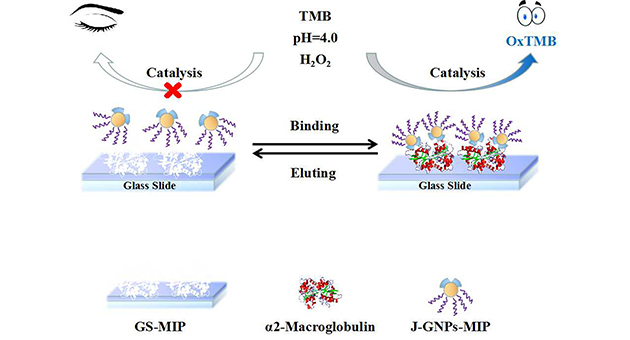 中国科学院兰州化学物理研究所中科院西北特色植物资源化学重点实验室师彦平研究员团队提出了一种双分子印迹免疫夹心比色(DMI-ICS)策略,实现了血清中肺癌标志物α2巨球蛋白(α2 macroglobulin)的比色检测。