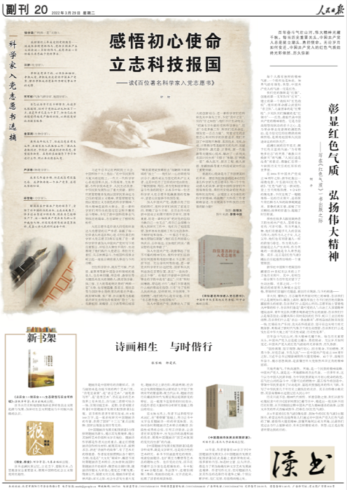 重温初心使命是为了开创更美好的未来。摆在我们面前的这本《百位著名科学家入党志愿书》,用一个个生动感人的故事,彰显中国科学家们不惧艰难险阻、勇担历史使命的优秀品格和优良传统。以爱国主义为底色的科学家精神,将鼓舞广大科技工作者砥砺奋进,为实现高水平科技自立自强贡献力量!