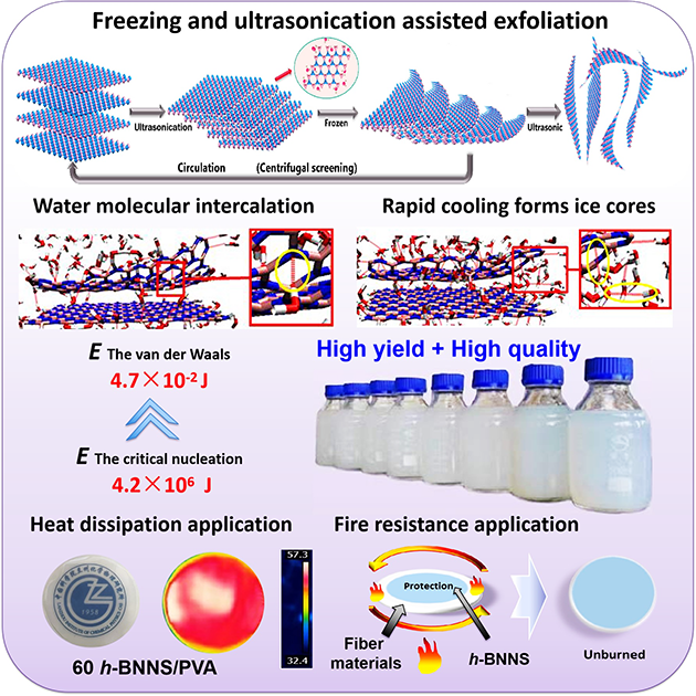 "This method offers an environmentally friendly method to exfoliate h-BNNSs with controllable thickness by a rapid water freezing and subsequent ultrasonication process. These as-obtained h-BNNSs can be used as polymer additives, thermal conductive fillers, and flame retardants," said Prof. YU Yuanlie, corresponding author of the study.