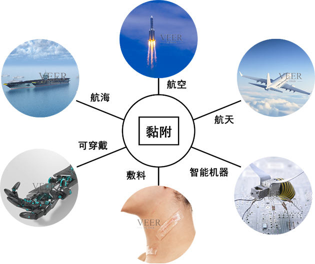 人类的生活离不开黏附,与黏附相关的材料和技术已应用到各行各业,如航天、航空、航海机械工程(涂层黏附、胶黏剂)、智能机器人(可逆黏附和传感装置)、可穿戴设备(电子皮肤)和生物医学(伤口敷料、骨粘连和快速止血)等。然而对于常规的黏附剂而言,一旦在潮湿或含水环境中,都很难保证良好的粘接,这主要是因为胶黏剂与基材之间的水膜阻碍了二者的充分接触和分子间相互作用的形成。因此,去除这层界面水就成为实现超强水下黏附的关键。