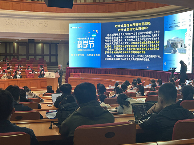 中国科学院院士汪景琇作了题为《追求卓越与辉煌——我国的太阳物理研究》的报告。汪景琇在报告中,首先探讨太阳物理学研究中重大的科学问题;再主要介绍中国太阳物理学者的拼搏和追求学术卓越和辉煌的奋斗,以及为国家发展和安全所作出的努力;最后讨论我国面临的科学挑战和机遇。现场不少青少年学生进行了提问,汪景琇院士对青少年提出了寄语,鼓励青少年及青年学者踏实学业、敢于挑战、勇于创新,为我国的科学事业添砖加瓦。
