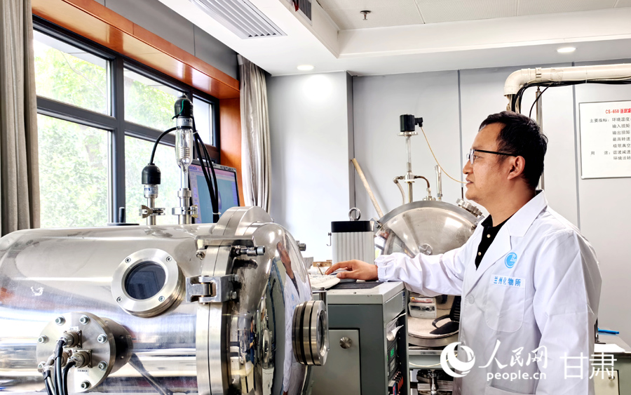 中国科学院兰州化学物理研究所实验室内,研究人员正在查看相关监测数据。人民网记者 高翔摄