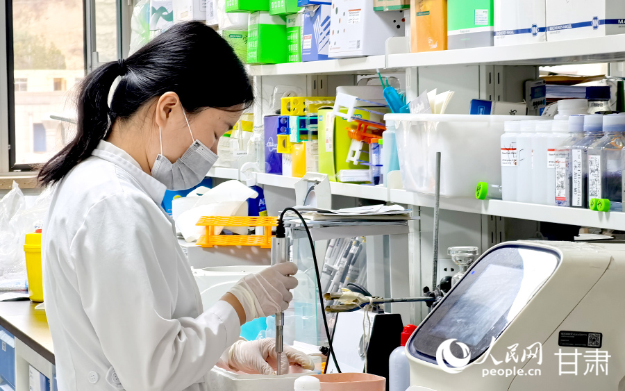 在中国农业科学院兰州兽医研究所,科研人员在实验室工作。人民网记者 高翔摄
