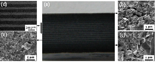 在科技部“973”项目、国家自然科学基金项目和中科院“西部之光”人才培养计划项目的资助下,中国科学院兰州化学物理研究所润滑与防护材料研究发展中心研究人员通过梯度结构和仿生层状结构设计,显著提高了陶瓷润滑材料的力学性能。该研究小组发展了一种简易的铺层-热压原位成型工艺,将固体润滑剂以梯度分布方式复合在具有高强度和可靠性的仿生层状结构氧化铝和氧化锆陶瓷中,成功制备出系列结构/润滑功能一体化陶瓷复合材料,为陶瓷材料在摩擦学领域更为广泛的应用奠定了重要的基础。