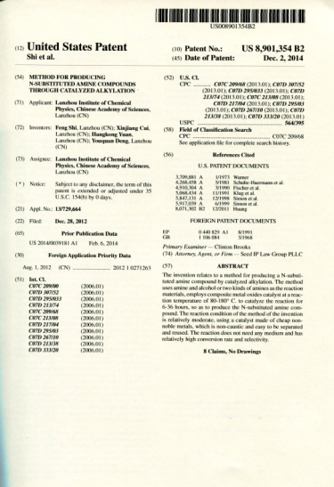 N-烷基化胺合成美国专利首页