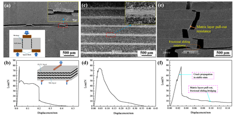通过仿生界面结构和过渡层设计可进一步提高材料的力学性能和可靠性,具有连续弯曲和桥连结构界面的氧化铝层状复合材料不仅保持了氧化铝陶瓷高强度的特性,同时也具有普通层状复合材料高韧性和高能量耗散的特性,实现了材料弯曲强度和断裂韧性的统一。研究还表明,仿生界面微结构不仅有利于材料的力学性能和摩擦学性能,还可显著提高陶瓷复合材料的整体性和抗热震稳定性(J. Eur. Ceram. Soc., 2015, 35, 1123-1127; J. Eur. Ceram. Soc., 2015, 35, 1581-1591; Mater. Des., 2015,65, 1205-1213)。