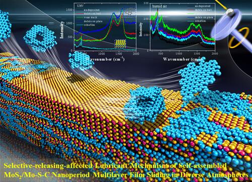 图2. 高真空环境下自形成纳米多层薄膜MoS2/Mo-S-C选择性转移行为示意图