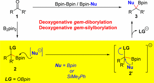 有机硼化合物作为重要的有机合成中间体,广泛应用于合成化学各个领域。近年来,由于其既可以进行单官能团化又可以双官能团化且具有较高的反应活性,有机偕二硼以及偕硅硼类化合物受到越来越多科研工作者的关注。然而该类化合物的合成仍具有一定的挑战。羰基官能化有机分子广泛存在于自然界中,也是重要的化工原料。基于其羰基官能团的催化转化构建有机偕二硼/偕硅硼类化合物具有重要的合成意义以及应用价值。
