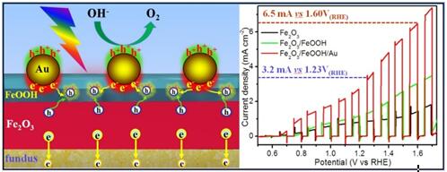 Fe2O3/FeOOH/Au光生电荷分离示意图与光电催化分解水性能