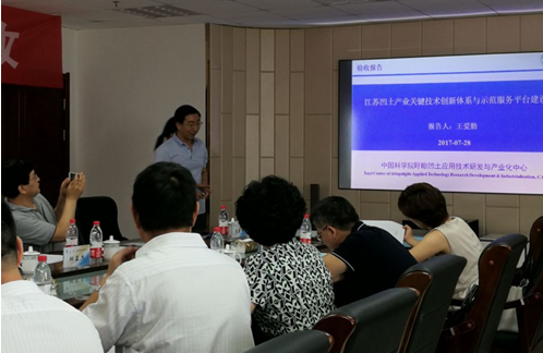 7月28日,中国科学院科技促进发展局组织有关专家,在江苏省盱眙县对中国科学院科技服务网络计划(STS)区域中心项目“江苏凹土产业关键技术创新体系与示范服务平台建设”进行了验收。中科院南京分院分党组副书记、纪检组组长杨涛主持了验收会,中科院科技促进发展局科技合作处处长翟金良、副处长邱显杰和中科院南京分院科技合作处处长尹睿等出席了验收会。
