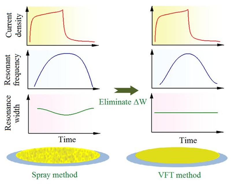 VFT技术实现了在EQCM晶体片上的微量、均匀的涂覆,保证了EQCM测量的准确性和重复性;适用于各种活性材料;可以快速、准确地判断活性材料的储能类型,它将极大地促进EQCM在SCs储能机理中的广泛应用。此外,该技术在电池体系的机理研究、环境保护、分子印迹、药物性能研究等方面也具有巨大的应用潜力。