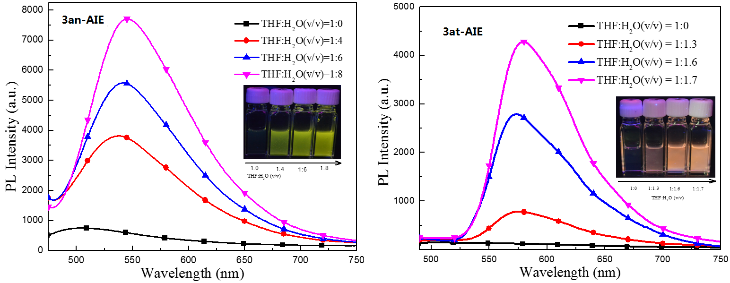 Scheme 4. 产物3an和3at的聚集诱导发光效应