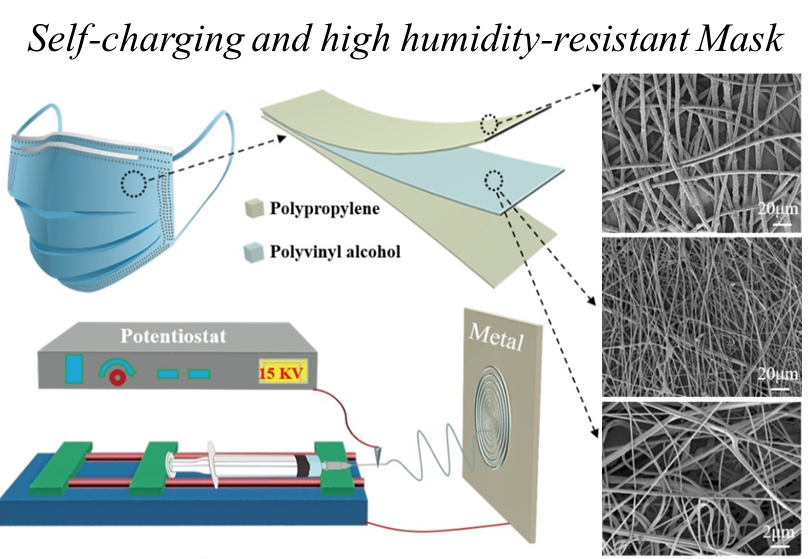 图1. PVA基耐湿、自充电口罩的结构设计与微观形貌
