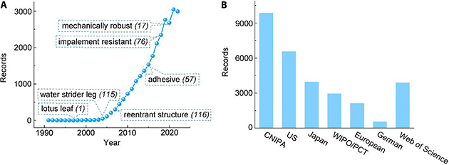 图1. 超疏水表面的论著、专利情况