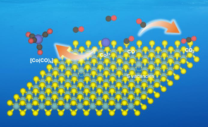图1. MoS2促进的一氧化碳还原二价钴到羰基钴
