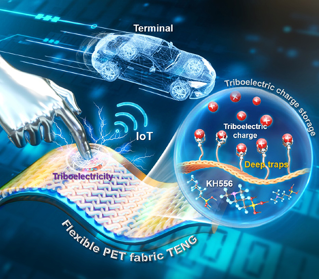 摩擦起电过程中产生的电荷会瞬时存储在电介质表面,进而被两种不同类型的陷阱(浅陷阱和深陷阱)捕获。其中,浅陷阱中的电荷容易逸出,优先耗散到环境中,而深陷阱中的电荷则因为极难逸出,可长期储存。因此,影响摩擦层电荷耗散率的关键因素是陷阱捕获电荷和被捕获电荷的逃逸能力。基于此,该团队通过系统研究,揭示了载流子深陷阱在摩擦电荷存储中的机制,通过分子自组装技术在织物摩擦层界面构建载流子深陷阱的方式增加TENG的电输出,将该织物TENG用于物联网可穿戴电子设备的电源模块,实现了对机械运动的稳定控制。相关研究成果发表在Advanced Materials(2024,2303389)上。