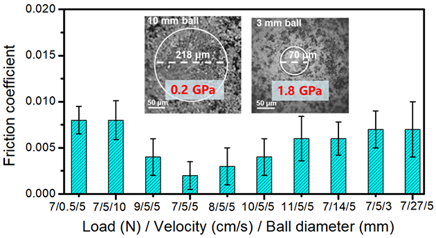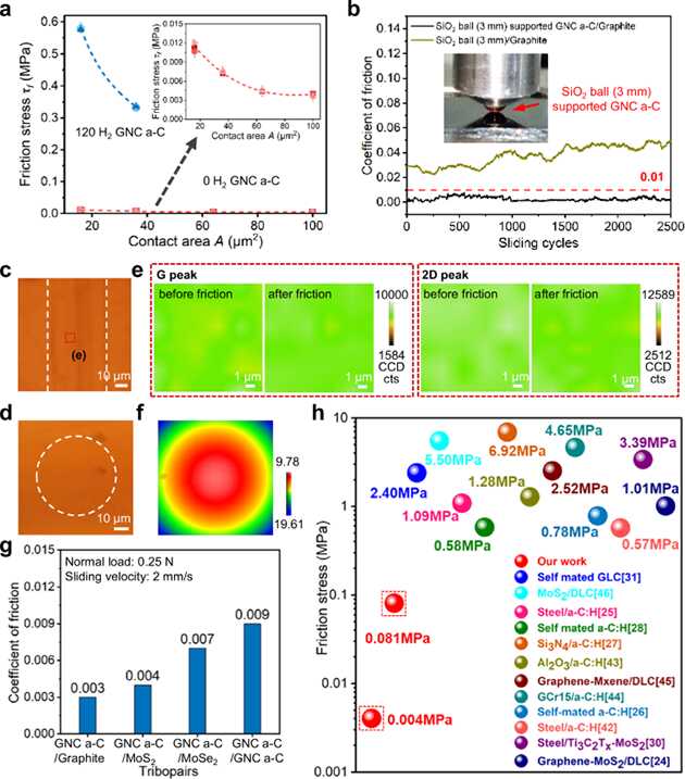 研究人员提出了“氢调制界面摩擦”策略,通过非晶与晶体异质配副设计,构建含氢碳薄膜/二维复合涂层体系,实现了宽承载、宽速度、惰性气氛等模拟工况下宏观尺度固体超润滑。相关成果发表在Advanced Materials (2023,2303580)和Advanced Science(2024,2309701)上。兰州化物所杨兴助理研究员为论文第一作者,王永富副研究员和张俊彦研究员为共同通讯作者。
