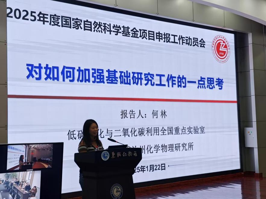 为进一步落实中国科学院关于加强基础研究工作重要指示精神,切实做好研究所2025年度国家自然科学基金项目的申报组织工作,1月22日下午,中国科学院兰州化学物理研究所召开2025年度基础研究工作推进会暨国家自然科学基金项目申报动员会。研究所青年科研骨干近百人参加会议,会议由发展规划处处长岳莹主持。