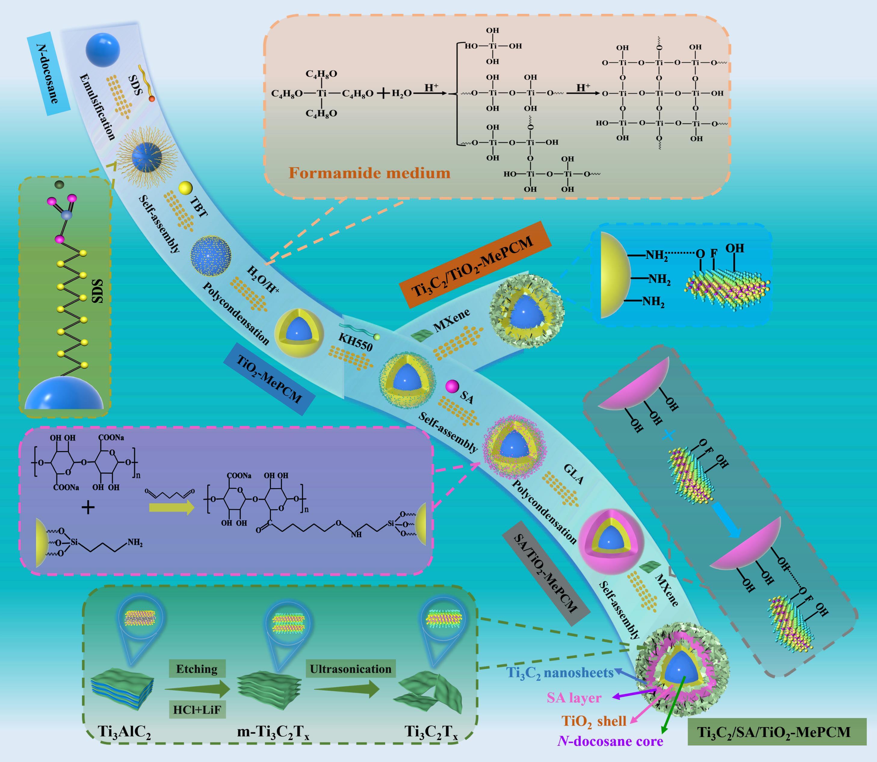 图1. Ti3C2Tx修饰相变微胶囊的合成策略及反应机理示意图