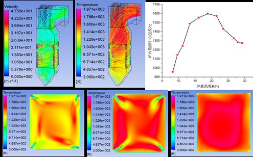 近期,团队在华能兰州西固热电有限公司和西安热工研究院的大力支持下,首先完成了165MW机组的数值模拟,结果表明,四角切圆型锅炉炉内燃烧烟气温度分布曲线呈现正态-抛物线状态,中间燃烧区域温度高,炉底及炉膛出口温度偏低,最高燃烧温度始终分布在主燃烧与 SOFA之间,因此重点喷涂区域为主燃烧区域和 SOFA 区域。