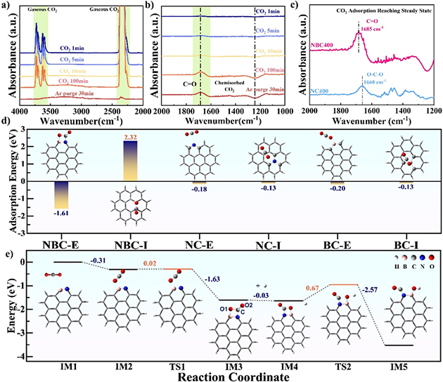 图2.理论计算结合原位红外揭示N-B位点活化转化CO2新机制