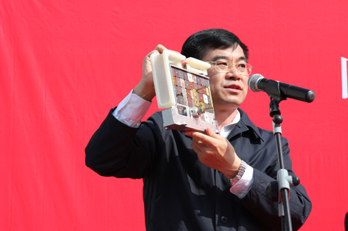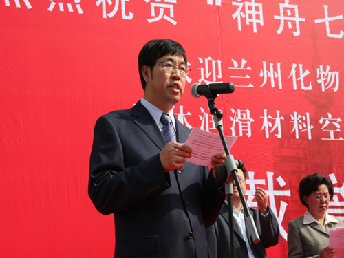 “神七”固体润滑材料分系统指挥、项目总体负责人刘维民研究员讲话并现场演示
