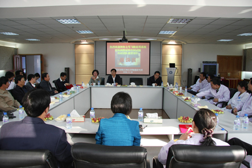 “神舟七号飞船应用系统固体润滑材料空间试验”项目主管设计人翁立军研究员向大家介绍了科研团队承担任务的具体情况,并总结了在承担任务过程中取得的成功经验和典型事迹。