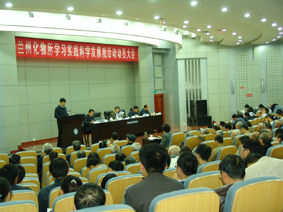 刘维民所长在动员报告中首先向大家介绍了中央、省委、中科院和分院党组安排部署学习实践科学发展观活动的基本情况。强调了开展学习实践活动的重要意义,指导思想和主要原则。重点强调了兰州化物所学习实践活动提出的总目标是要 “一个中心、一个转变、两个面向、三个提高”,深入开展学习实践科学发展观活动。一个“中心”是以解放思想,改革创新,促进科研工作为中心;一个“转变”是转变科研工作中不适应不符合科学发展观的思想观念;两个“面向”是面向世界科技前沿、面向国家战略需求和区域经济社会需求开展科学研究工作;三个“提高”是进一步提高研究所科技成果转化能力,进一步提高管理和服务部门管理与服务的水平,进一步提高全所职工的凝聚力和创新能力。我们要进一步解放思想、实事求是、改革创新,切实增强贯彻落实科学发展观的自觉性和坚定性,提高领导科学发展、促进构建和谐研究所的能力,使党的工作和党的建设更加符合科学发展观的要求,把全所职工和研究生的积极性进一步引导到科学发展上来,把科学发展观贯彻落实到研究所发展的各个方面。要把开展学习实践活动作为推动科技创新的重要机遇和强大动力,正确处理开展学习实践活动和推进科技创新工作的关系,做到两手抓、两不误、两促进,把开展学习实践活动的成效体现到解决突出问题、促进科技创新、推动科学发展上来,用科技创新的实际成果来衡量和检验学习实践活动的成效。通过开展深入学习实践科学发展观活动,进一步提高研究所自主创新能力,使研究所成为中科院在国家西部具有重要作用的高技术平台,成为具有国际水准的高水平研究机构之一。