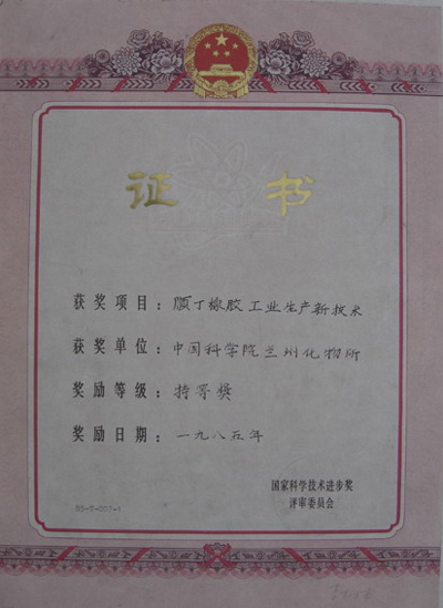 中科院兰州化物所、中科院长春应化所、石化总公司锦州炼油厂等共同开发的顺丁橡胶工业生产新技术,于1972年初在北京燕山石化公司建立了第一套万吨级生产装置,此后又相继建立了5套万吨级以上生产装置,为国家累计创效益近100亿元。