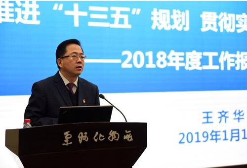 王齐华指出,2018年兰州化物所认真学习贯彻习近平新时代中国特色社会主义思想和党的十九大、十九届二中、三中全会精神,认真贯彻落实党中央、国务院和院党组决策部署,坚持以党的政治建设为统领,全面推进党的各项建设,在全所职工共同努力下、在离退休老同志的关怀和帮助下,研究所“一三五”规划战略稳步推进,科研布局不断优化,核心竞争力持续加强,科研工作取得可喜成绩,科研成果不断涌现,人才队伍建设效果显著,各项工作均呈现出蓬勃发展势头。2019年,研究所将以习近平新时代中国特色社会主义思想为指导,认真学习贯彻党的十九大精神,深入落实习近平总书记关于科技工作的重要讲话精神和对中科院提出的“三个面向、四个率先”的要求,积极推进研究所“一三五”规划的落实,以重要影响力成果产出为目标,以全面从严治党为保障,继续深化体制机制改革,充分调动职工群众的积极性、主动性和创造性,确保各项工作再上新台阶,以优良成绩迎接建国七十周年、建院七十周年。