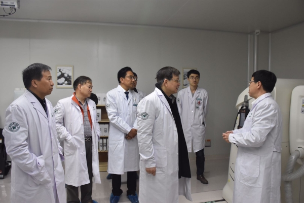 调研期间,侯建国赴武威肿瘤医院实地了解了近代物理所医用重离子加速器研发及产业化运行情况。